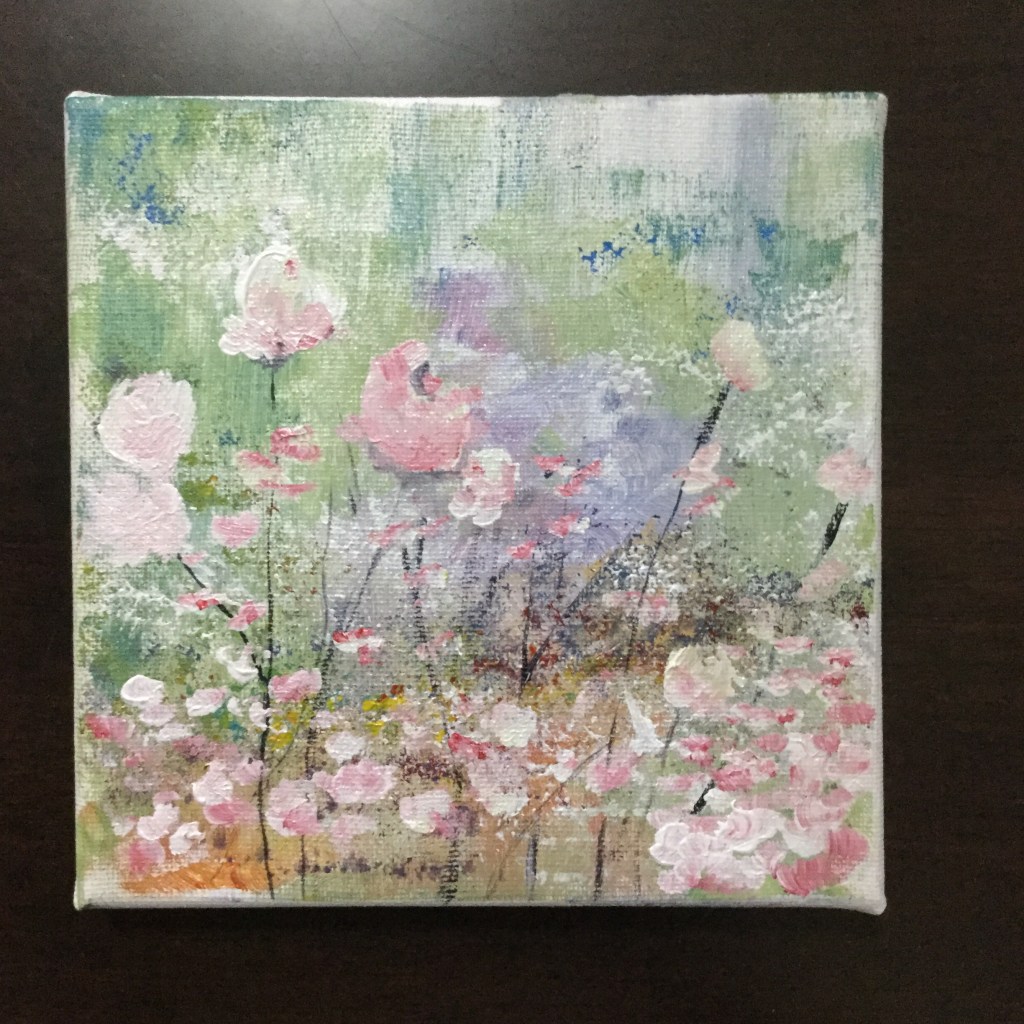 Here’s my first take on abstract painting. I like how the flowers turned out but I could’ve done a better job on the background.