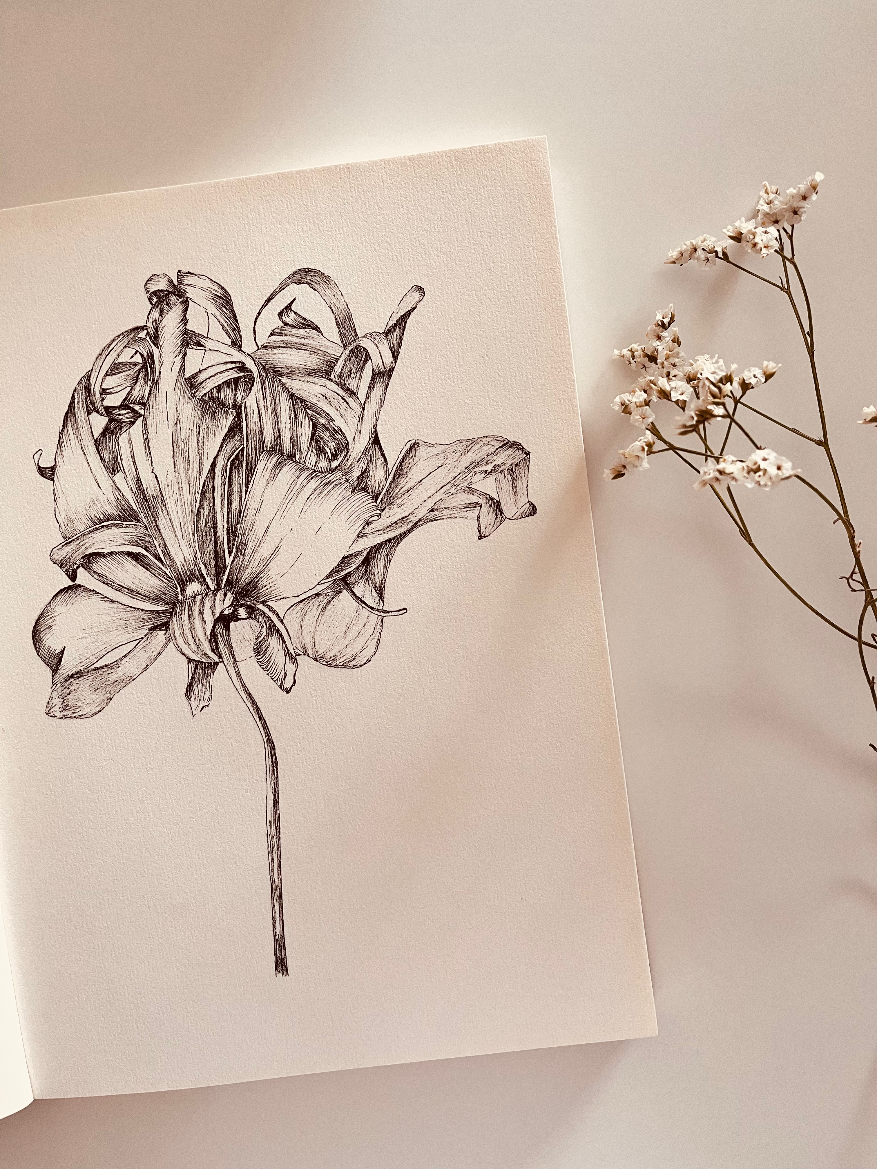 These images—botanical and fauna sketches, humble and intricate—are witnesses to this gentle process. A pen, a page, and presence. That’s all it takes.